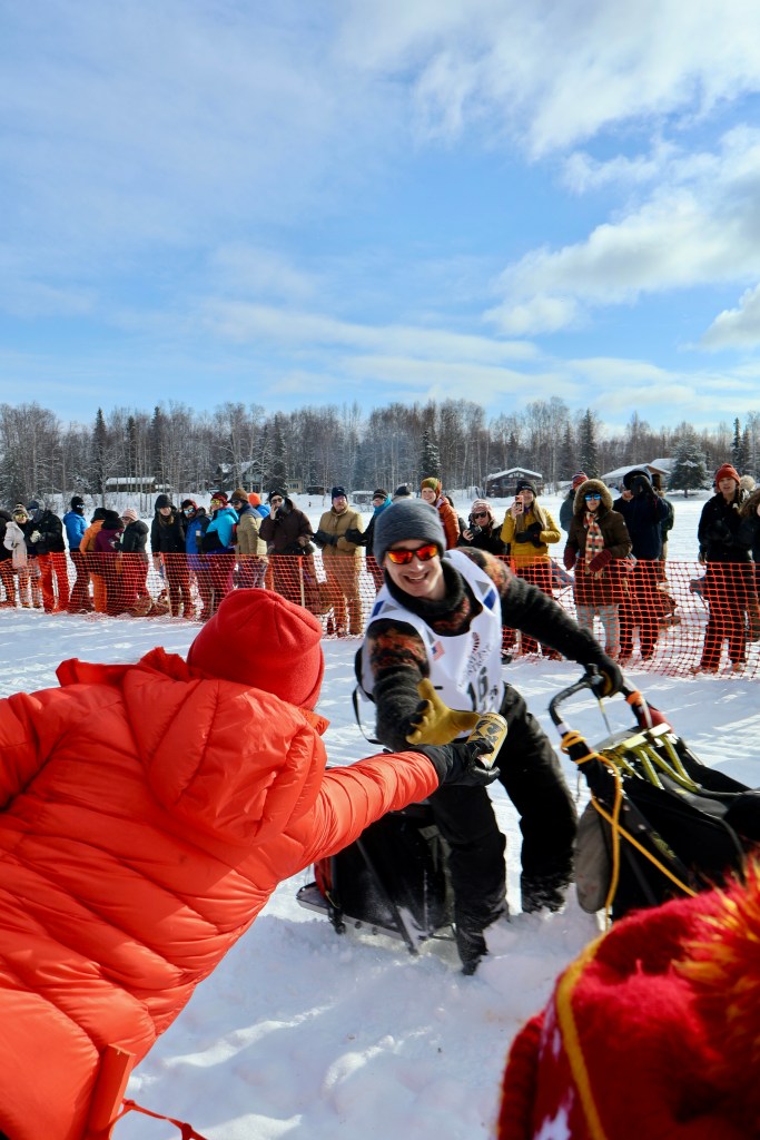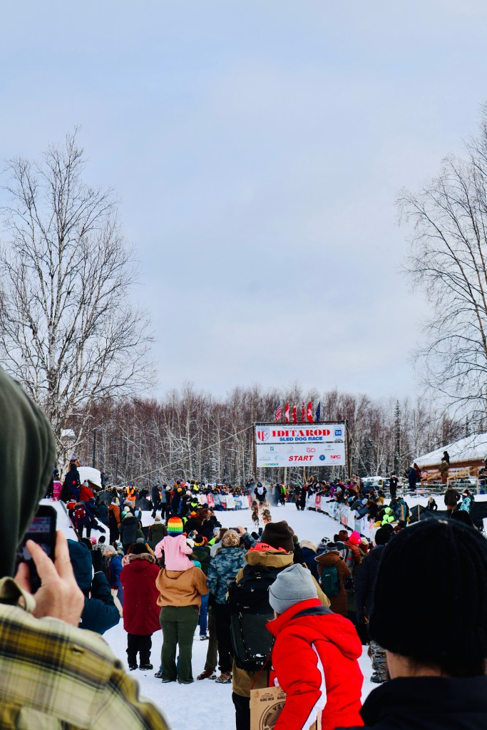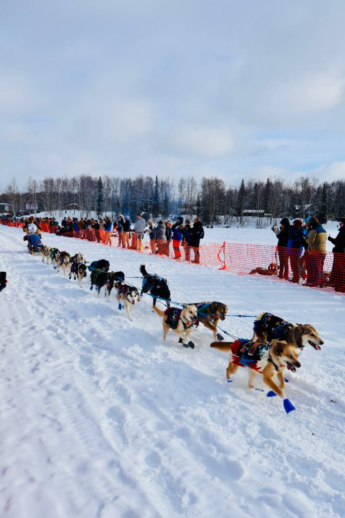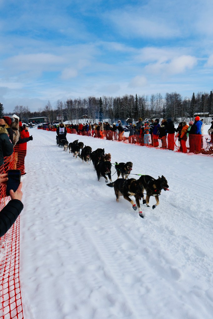 There are two “starts”- a ceremonial and an official. The ceremonial start is just that- ceremonial. It’s a short race, but a chance for the teams and community to honor the history and give a little “send off” to the teams. The second start, the “official” start takes place at Willow, on the lake (which is fully iced over), and is very much a “party”. Fans bring out entire picnics, ice shanty’s to stay warm, snow machines, and we even saw some fire pits as well! The atmosphere was just one of joy and excitement for all these teams to finally take off after the lead up training. Both were incredible to see and be a part of and if you can make it to both I would!