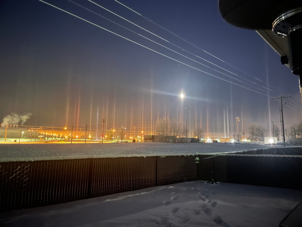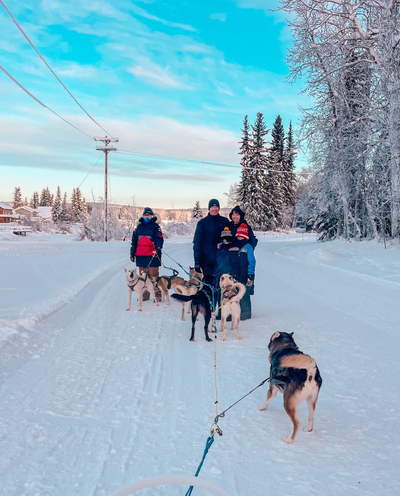 When we moved up here, I said I was excited to experience an “Interior Alaska” Winter. I wanted to feel it all- from the darkness, to the frigid harsh temps, to the snow; I wanted the full experience…and I got it.From Winter Solstice Celebrations, to eating dinner with a moose, to seeing both light pillars AND The Northern Lights, to experiencing extreme cold and Ice Fog, to going dog mushing. Winter offered a little bit of everything and I honestly loved every minute of it. So, let’s break it down and talk about what life and the weather looks like now.I’ll pop some pictures in so you can experience some of it too.