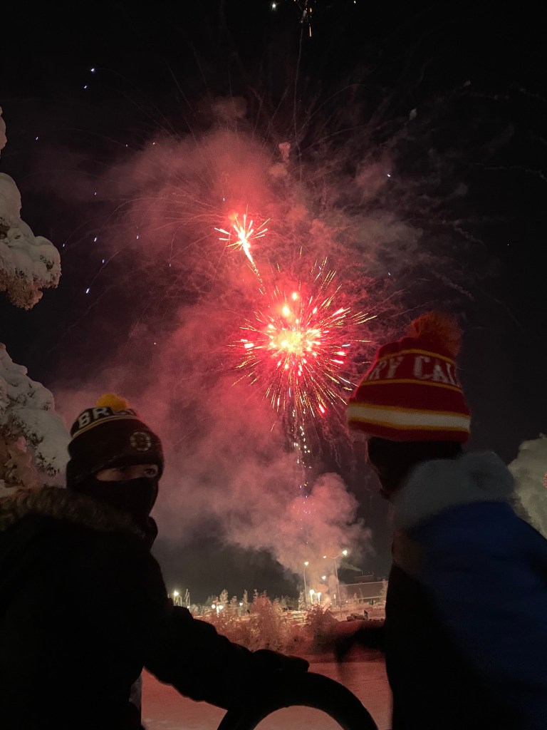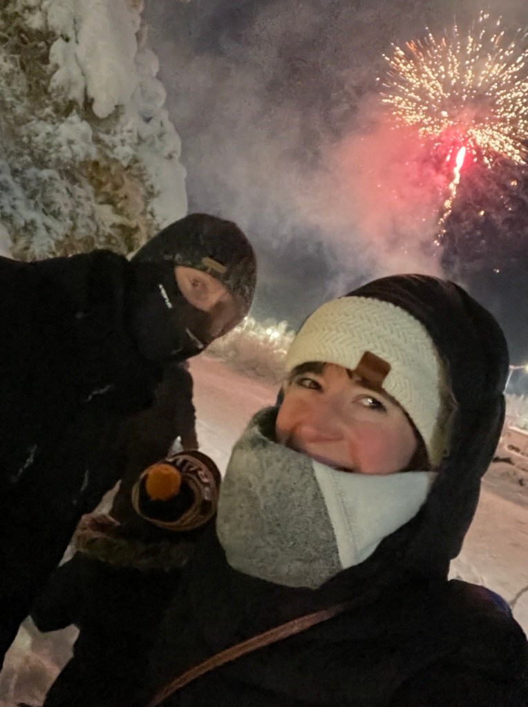 First off, the darkness. Yes, it’s true we get down to the point where we only have about 3 hrs. and 30-45 minutes of “daylight”. Yes, that is INSANE to experience…and yet it’s also so cozy. We break out the sun lights first thing in the morning to help us get up and go and re set our circadian rhythm. At night we cuddle up on the couch with all the lamps and cozy lighting you can imagine and hunker down. Life moves slower, more intentionally. There isn’t any “let me just run out for this” and yet you never really feel stir crazy. The Northern Lights are OUT and out constantly. We could see them some nights from our windows and would just lay and watch them. We have fireworks in the dead of winter- in fact the Winter Solstice Celebration is one to experience and to remember.