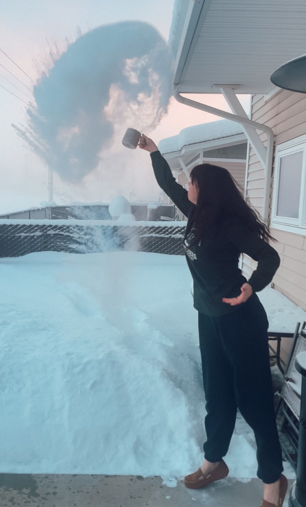 Finally, there’s the extreme cold. I will admit- there are times when this feels brutal. I did hit a brief period where I just wanted winter to end. I was tired of the cold, I wanted to wear dresses again, and I just wanted to be able to get out. Thankfully this only lasted, at most, two weeks and right in the middle the worst of the cold broke and we started to see more reasonable temperatures. The thing to note about Interior Alaska is it’s very dry.  So, the cold is very dry. Which, in turn, makes it very manageable. Am I saying I want to live at -40F forever? Absolutely not. Am I saying, that -40 is wild to experience and I’m glad I got to? Absolutely.