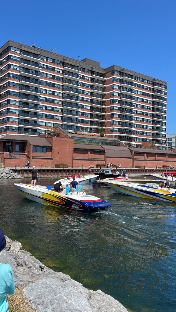 Coinciding with that event, it was also the weekend of a boat race, so while we were walking along the water, we were treated with the site of these souped-up boats, with wonderful sounding engines pull in to dock for lunch.