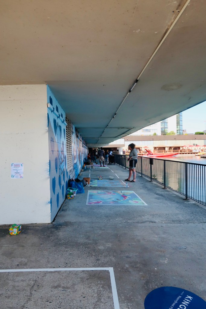 The next morning, we headed more towards downtown to walk along the river and the store fronts. We were pleasantly greeted by a Busker Festival. If you don’t know, a busker is a street performer. So, the folks that you walk past that are performing on sidewalks or subway stations for donations and your enjoyment? Buskers. And Kingston had an entire weekend full of entertainment lined up. The streets were blocked off to allow several performers, with a good distance between, there was a stage set up at the water, as well as food, face paint, and a sidewalk chalk competition.