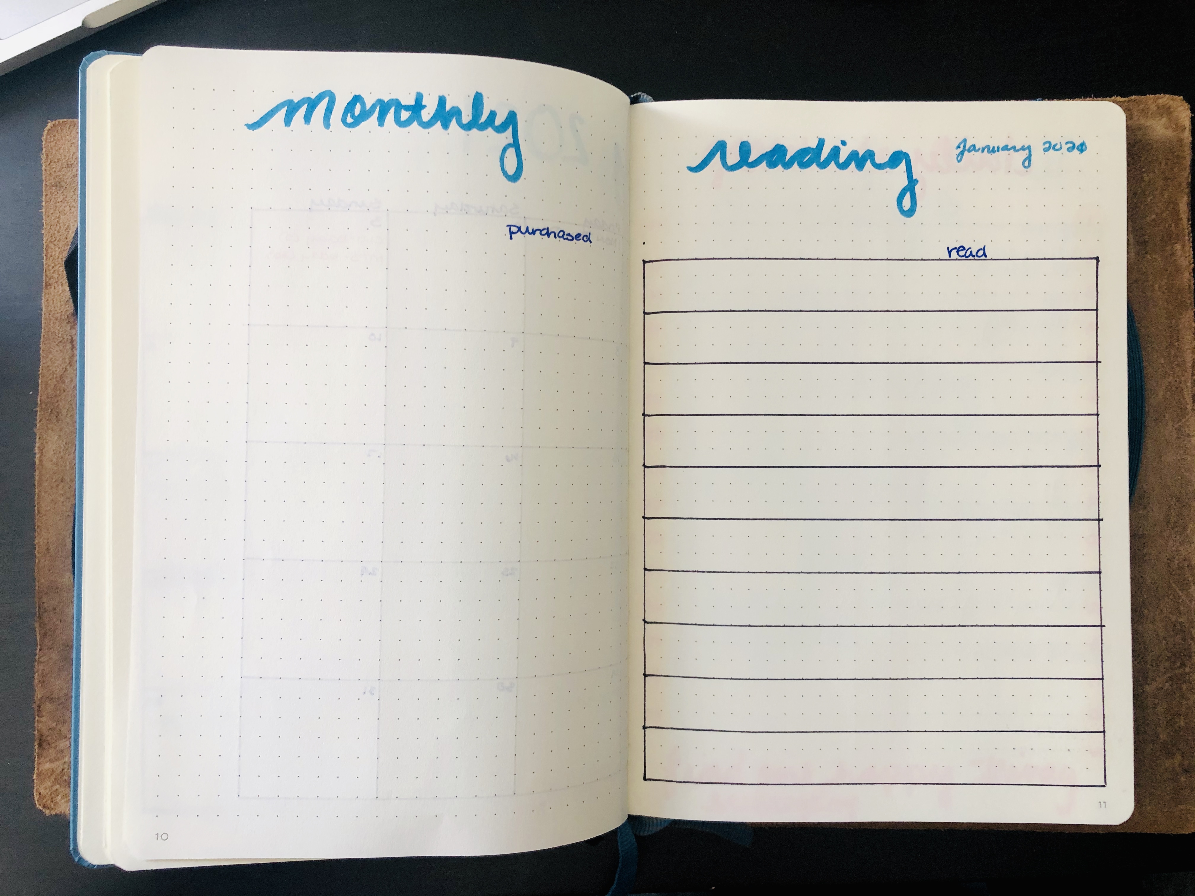 Each month has a simply monthly view, a reading section, a daily gratitude section, and then two-page weekly spreads. I have kind of pre penned in some of the months and weeks as we are going to be moving and I don’t know when I will have all the supplies I would like and our new home, but this worked out well as I was able to adjust the layout for February when we won’t be doing much more than visiting family. I’ve done all of this in a Leuchtturm 1917 notebook that’s a beautiful shade of blue.