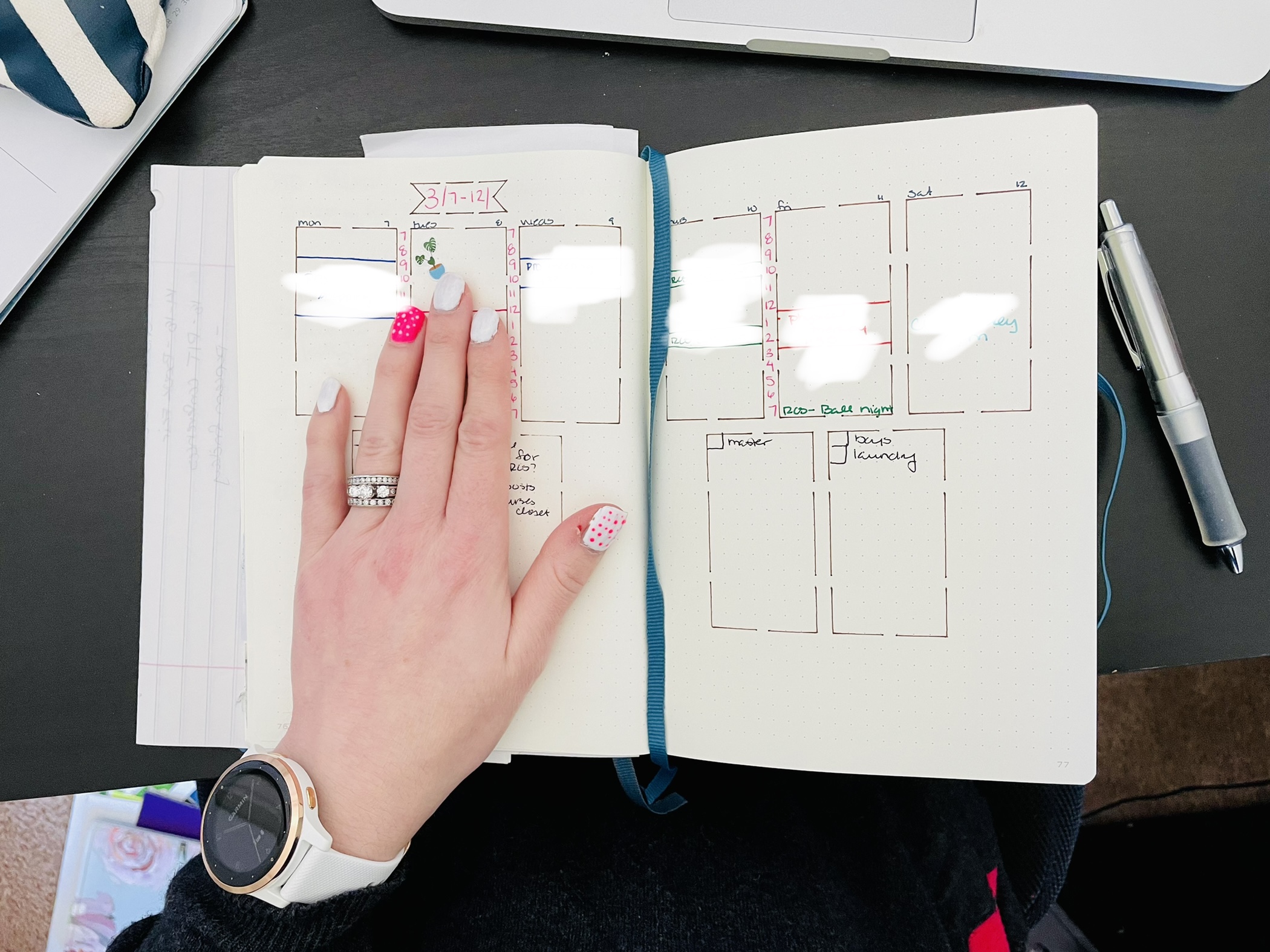 Here’s the thing, my ideal planner would have a spot to sort of time block my day in a visual sense, but also a separate section for a bit of a rolling to do list. I want to have the space to write out what I actually need to accomplish, but also be able to visualize how I’m spending my day in a time sense. All of that in a weekly view spread. Every planner that I was finding then involved me needing a separate notebook for the to-do list/meeting notes, and then a separate journal space, and a separate reading space. That was just not something that I wanted. Less is best, right? So, I decided to go back into the bullet journaling world to see if I could find a way to make it work.