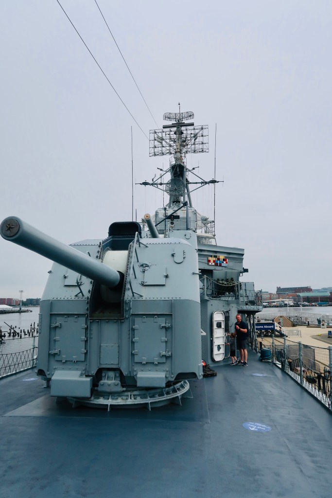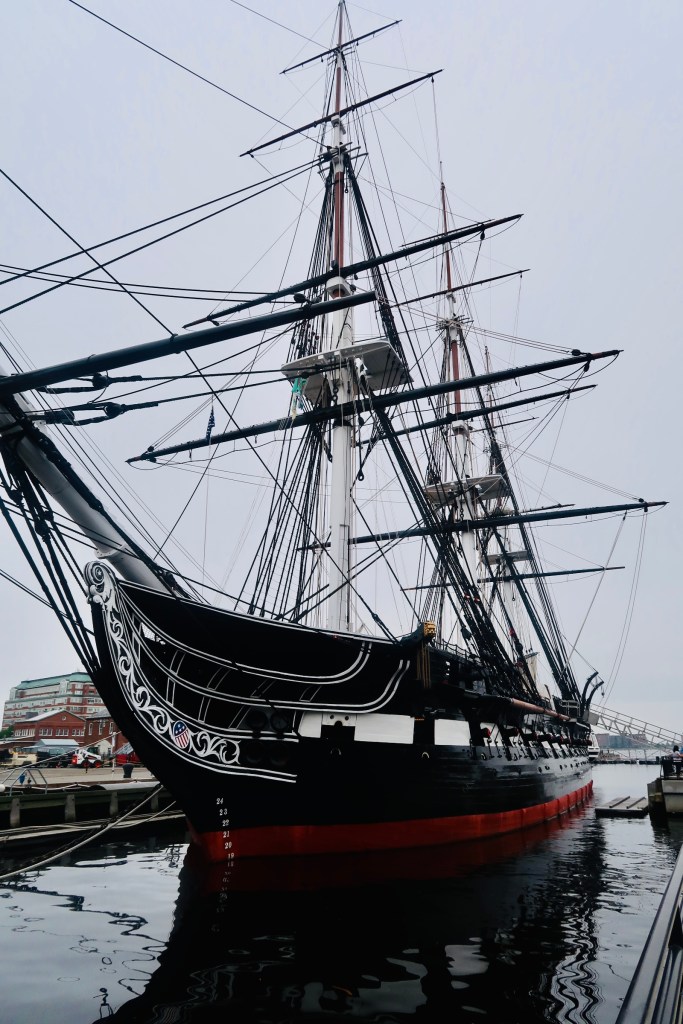 The final stop (for us) on the trail was at the USS Constitution (and then the USS Cassin Young DD 793). The USS Constitution is the oldest, still afloat, commissioned warship. It was launched in 1797 as a three-masted heavy frigate, one of six authorized by the Naval Act of 1794. The ship is known for the War of 1812 and the defeat of 5 British Warships and where the nickname of “Old Ironsides” was given. The Constitution was retired in 1881and was designated a museum ship in 1907. It is still a fully commissioned Navy ship and is manned by active duty Navy personnel on special duty assignment.